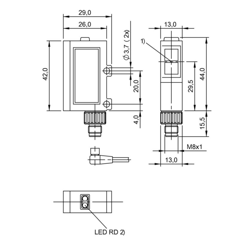 Capteur optoélectronique, Infrarouge, Connecteurs, Eloignement 0...5 m, 13,0x29.0x59.5 mm