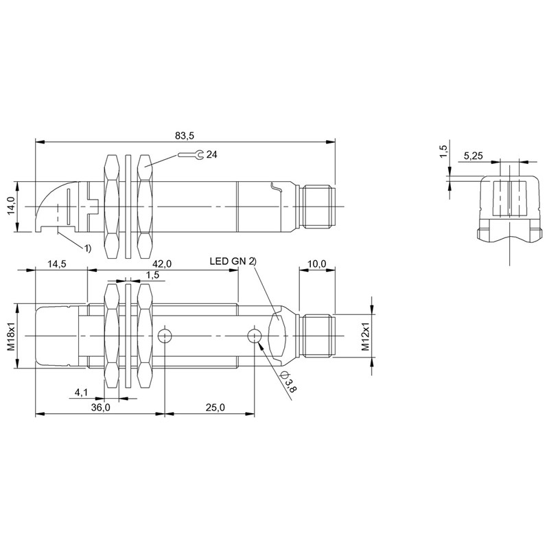 • Format: Cylindrique filété avec méplat, M18x1, faisceau radial