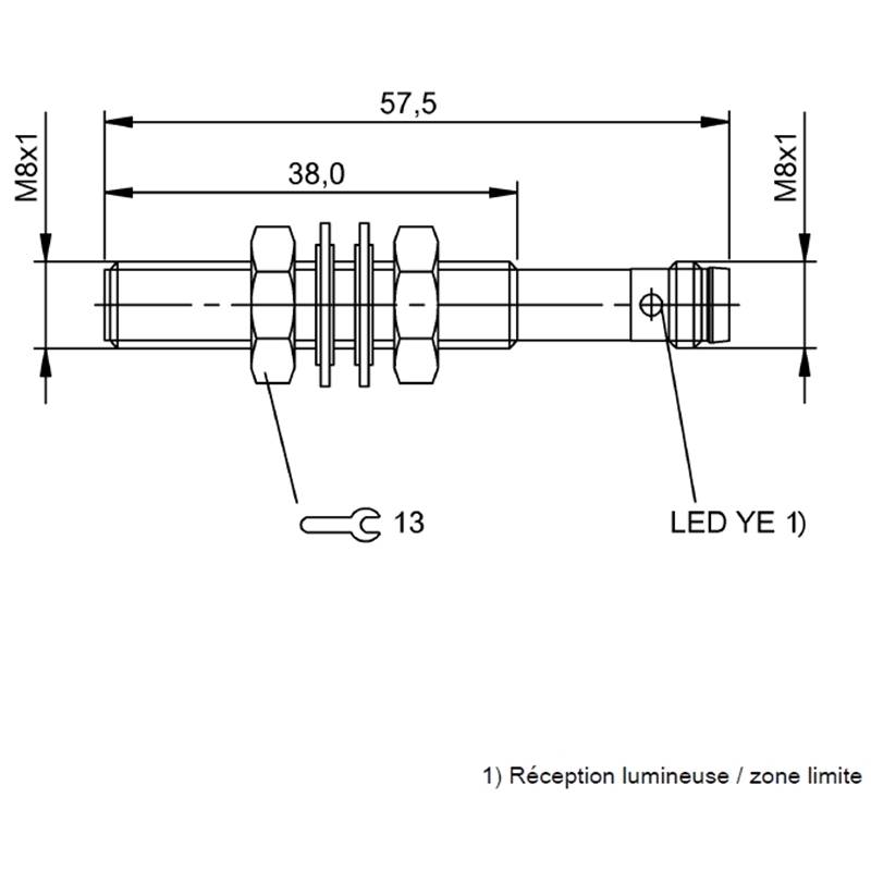• Format: Cylindrique fileté, M8x1, faisceau axial