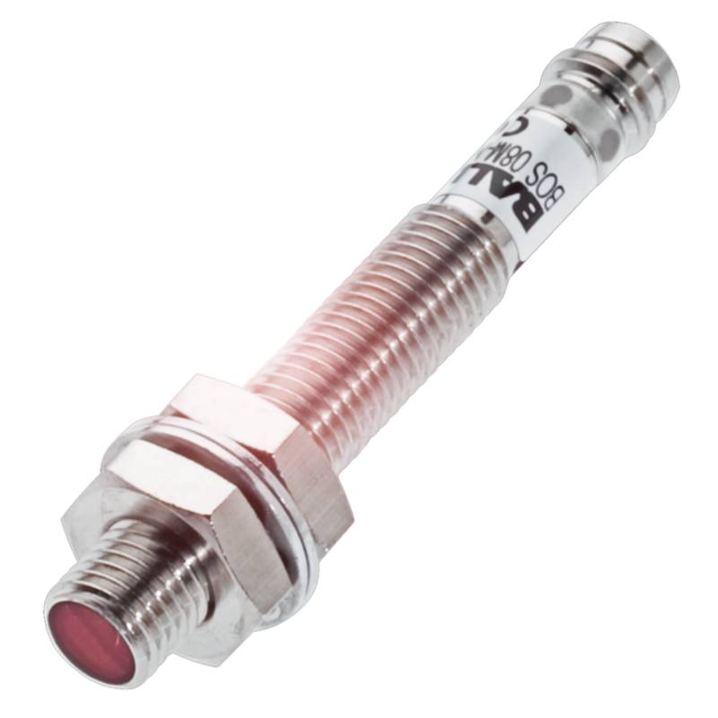 Capteur photoélectrique; Format: Cylindrique fileté, M8 x 1, faisceau axial; Principe du capteur: Barrage optique à réflexion; Principe de détection: Barrage sur réflecteur; Portée: 0 m...550 mm (sur réflecteur BOS R-9); Réglage: Aucun; Source d'émission: LED, Lumière rouge; Sortie de commutation: PNP (1x); Type de commutation: Contact à fermeture (NO); Mode de commutation: Commutation sombre; Fréquence de commutation: 400 Hz; Mode de raccordement: Connecteur mâle M8, 3 pôles; Tension d'alimentation: 10-30Vdc; Dimensions: Ø 8 mm x 57.5 mm; Matériau du boîtier: Laiton nickelé; Indice de protection: IP67; Température ambiante: -10…60 °C