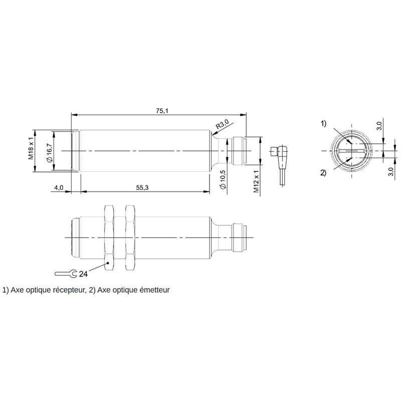 • Format: Cylindrique fileté, M18x1, faisceau droit