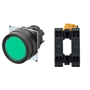 Bouton poussoir A22NN Ø22, lentille plastique, Plat, Momentané, Couleur bouton Opaque Vert, , 1NO, Non lumineux