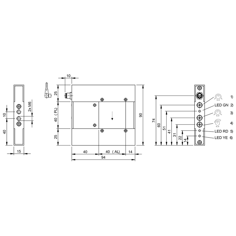 Cadre optique dynamique, Série: B, Dimensions: 15 x 90 x 104 mm, Fenêtre active (PL× AL): 40 × 40 mm, Interface: PNP statique à fermeture/ouverture (NO/NF) NPN statique à fermeture/ouverture (NO/NF), Principe de fonctionnement: Cadre optique dynamique, Principe de fonctionnement optique: Barrage optique unidirectionnel, Caractéristique faisceau: divergent, Type de lumière: Infrarouge, Raccordement: Connecteur, connecteur mâle M8x1, 4 pôles, Matériau du boîtier: Aluminium, anodisé, noir, Face sensible, matériau: PMMA, Tension d'emploi Ub: 15...30 VDC, Homologation / conformité: CE, UKCA, WEEE