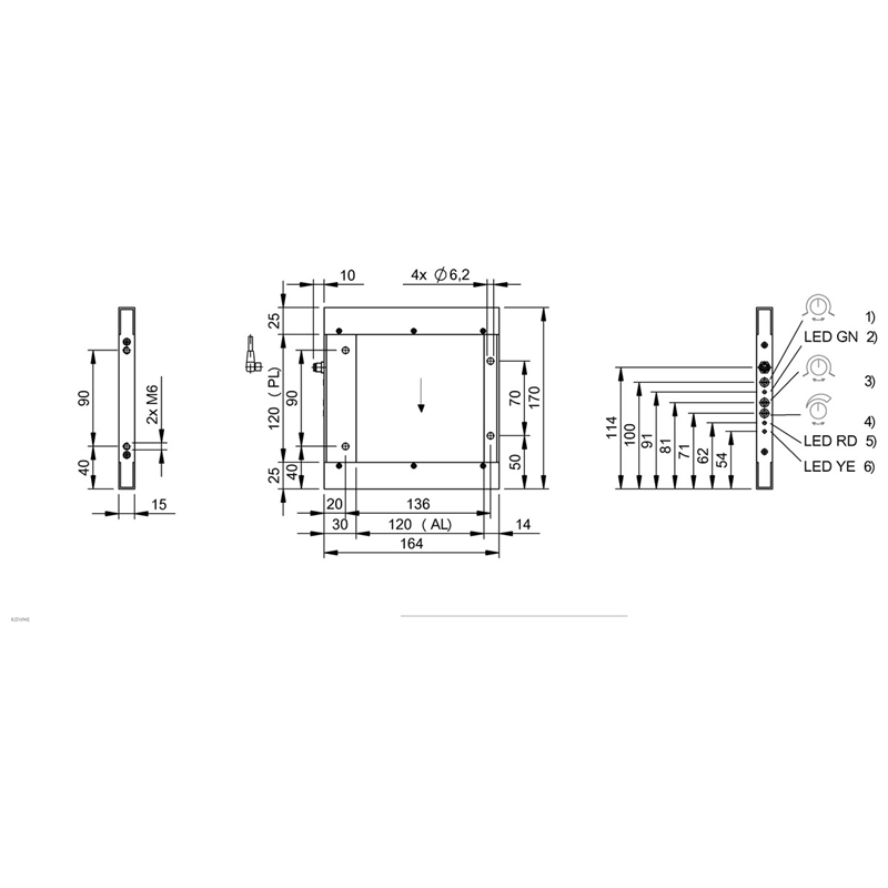 Cadre optique dynamique, Série: B, Dimensions: 15 x 170 x 174 mm, Fenêtre active (PL× AL): 120 × 120 mm, Interface: PNP statique à fermeture/ouverture (NO/NF) NPN statique à fermeture/ouverture (NO/NF), Principe de fonctionnement: Cadre optique dynamique, Principe de fonctionnement optique: Barrage optique unidirectionnel, Caractéristique faisceau: divergent, Type de lumière: Infrarouge, Raccordement: Connecteur, connecteur mâle M8x1, 4 pôles, Matériau du boîtier: Aluminium, anodisé, noir, Face sensible, matériau: PMMA, Tension d'emploi Ub: 15...30 VDC, Homologation / conformité: CE, UKCA, WEEE