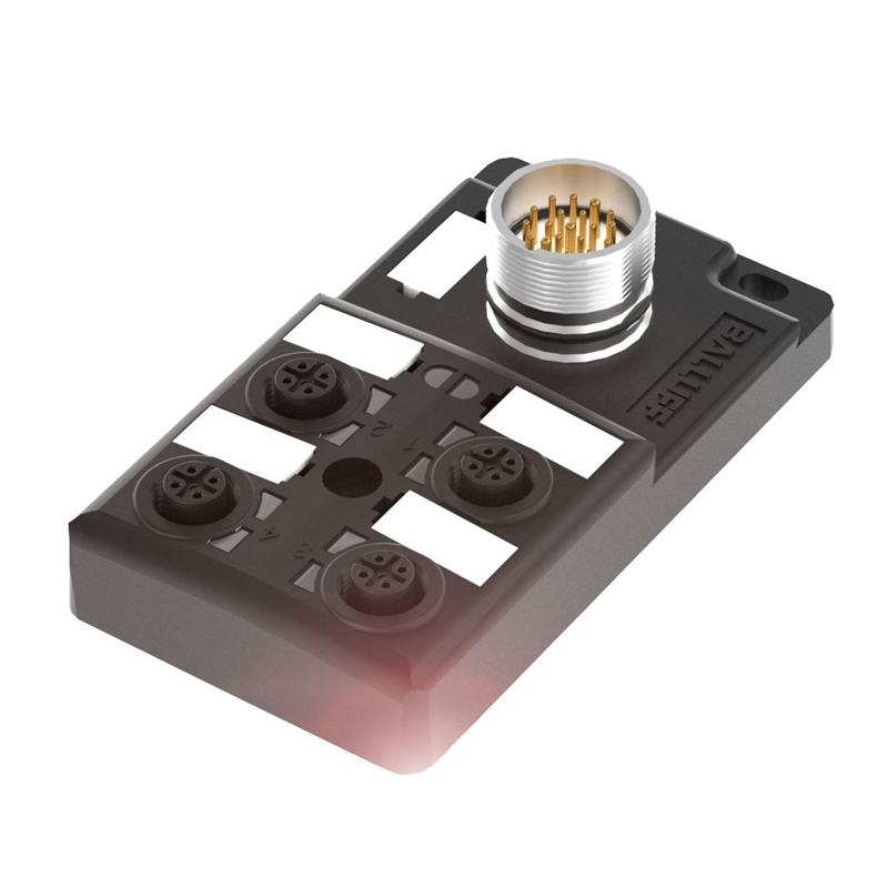 Boîtier répartiteur passif, Modèle=à deux rangées, Nombre d'emplacements=4 ST, Raccordement capteurs=Connecteur femelle 5 pôles M12x1, Raccordement automate=Connecteur M23x1