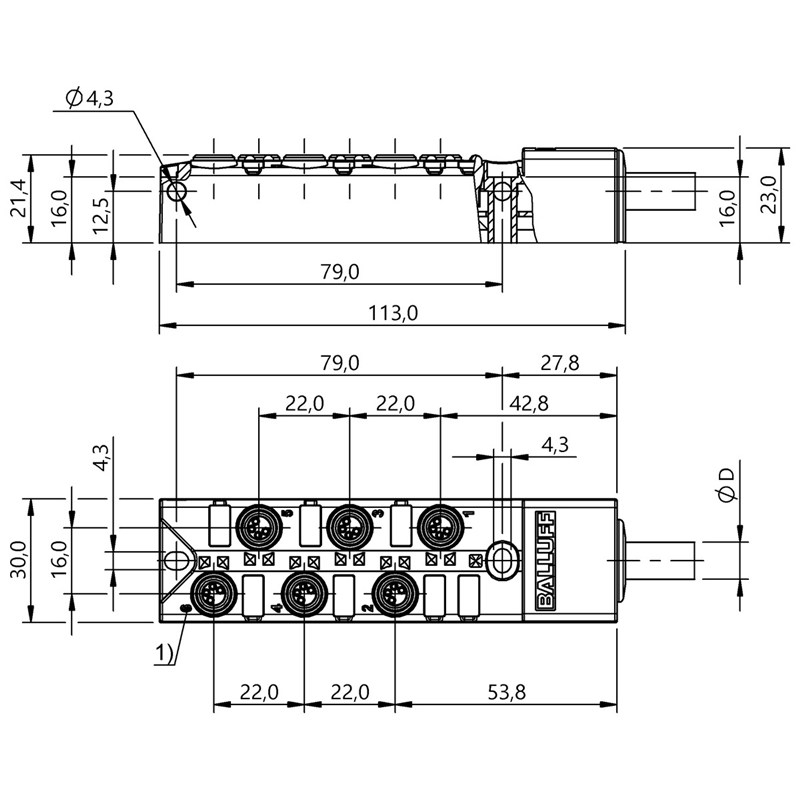 • Connexion emplacements: 6x M8x1-Connecteur femelle, 4-pôles