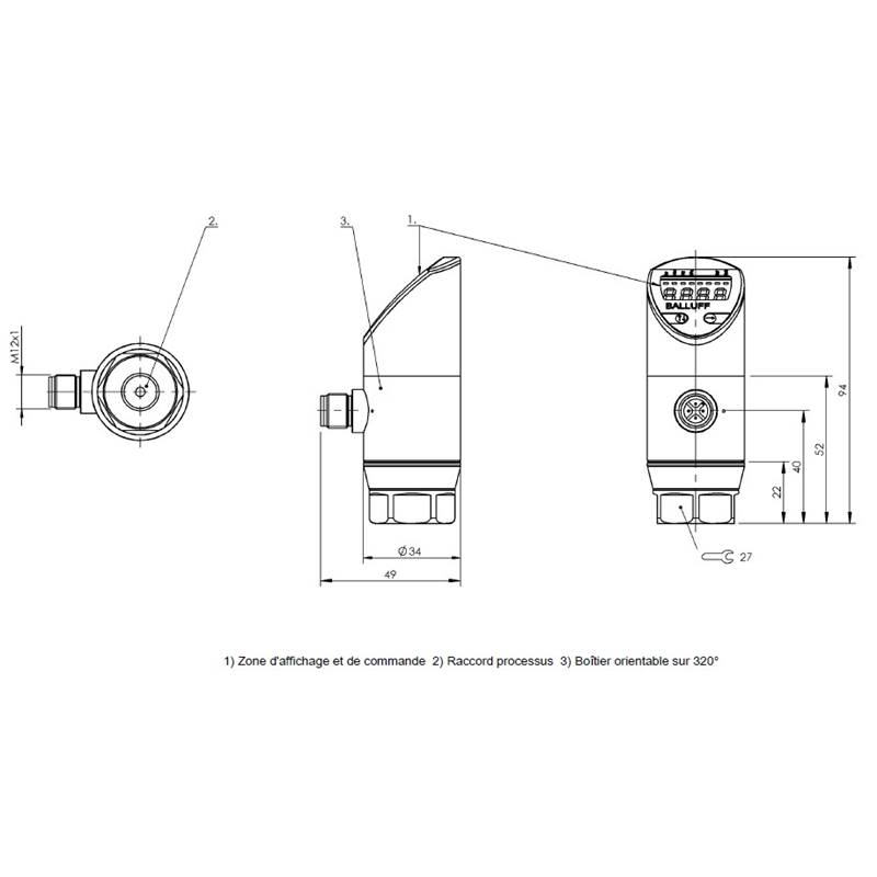 • Raccordement électrique: Connecteur mâle M12x1, 4 pôles