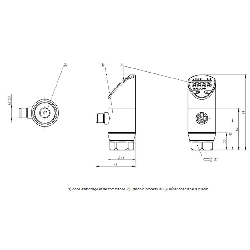 Capteur de pression, 0 bar...2 bar, 4 .. 20 mA, 1 x PNP, Matériau boîtier PA 6.6, Raccordement au processus G 1/4" selon DIN 3852, Tension d'emploi Ub : 18...36 VDC
