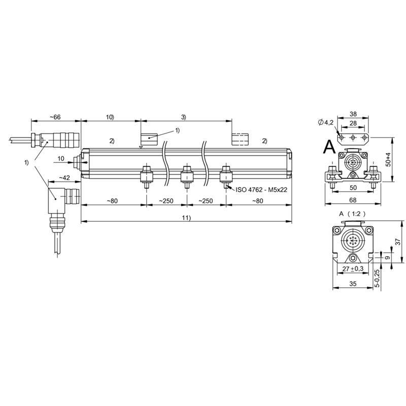 Capteur de déplacement Micropulse; Forme: Série Profil; Fixation: Brides de fixation; Capteur de position, nombre max.: 1; Plage de mesure: 1000 mm; Résolution: max. 0,1 mV; Ecart de linéarité max.: ±0,02 % P.E.; Fidélité de répétition: max. 0,1 mV; Sortie analogique: tension, 0…10 Vdc / 10...0 Vdc; Type de raccordement: Connecteur mâle M16x0,75, 8 pôles; Tension d'alimentation: 20-28Vdc; Matériau du boîtier: Aluminium; Classe de protection CEI 60529: IP67; Température ambiante: -40...85 °C