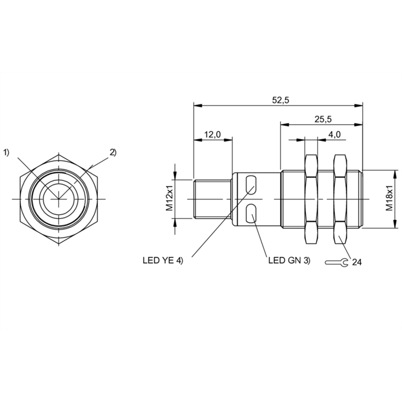 • Format: Cylindrique, M18 x 1, faisceau axial