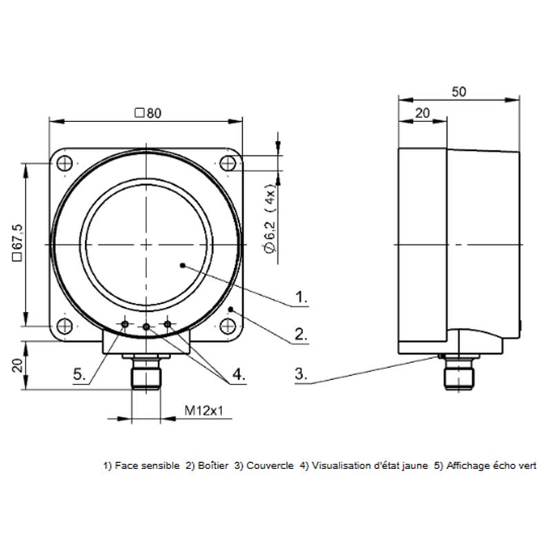 Capteur à ultrasons avec sortie numérique; Format: Parallélépipédique; Principe de détection: Directe sur l'objet; Portée: 600...6000 mm; Fidélité de répétition: 0,2 % P.E.; Angle d'ouverture du lobe acoustique: 8 °; Sortie de commutation: 2x PNP; Type de commutation: Commutation à fermeture / à ouverture (NO/NF); Fréquence de commutation: 0,5 Hz; Raccordement: Connecteur mâle M12 5 pôles; Tension d'emploi Ub: 12...30 VDC; Matériau du boîtier: PBT; Face sensible, matériau: Bille creuse en verre et époxy; Classe de protection: IP65; Température ambiante: -15...70 °C; Homologation / conformité: CE, WEEE, EAC; Série: Q80K0