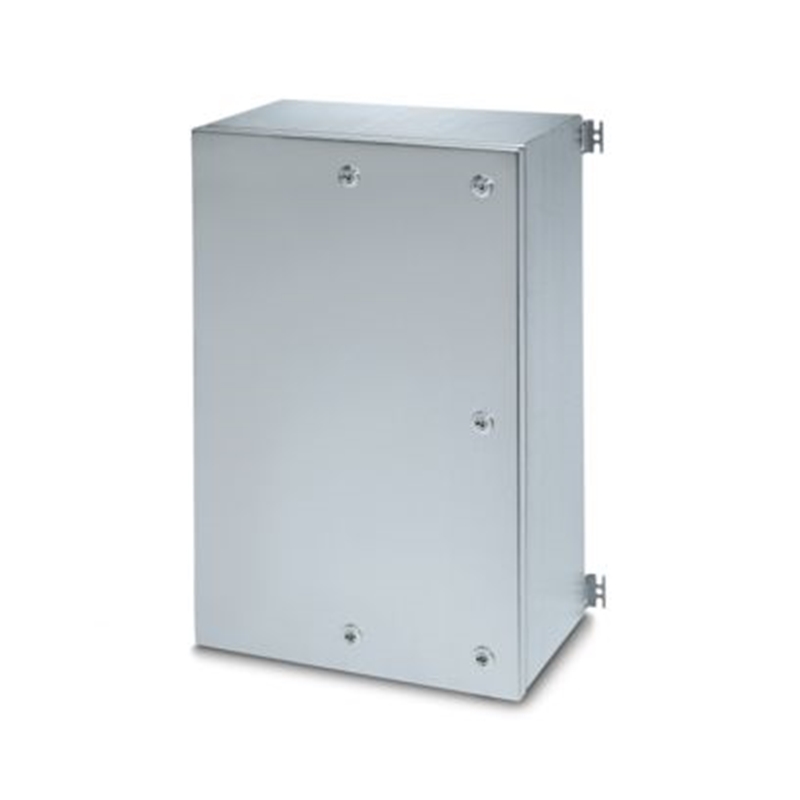Coffret de commande, avec porte à charnières et bouchon quart de tour, y compris plaque de fond, sans flasques, Matériau: Acier inoxydable 316L / 1.4404, Surface : brossée, argenté, Porte avec charnière