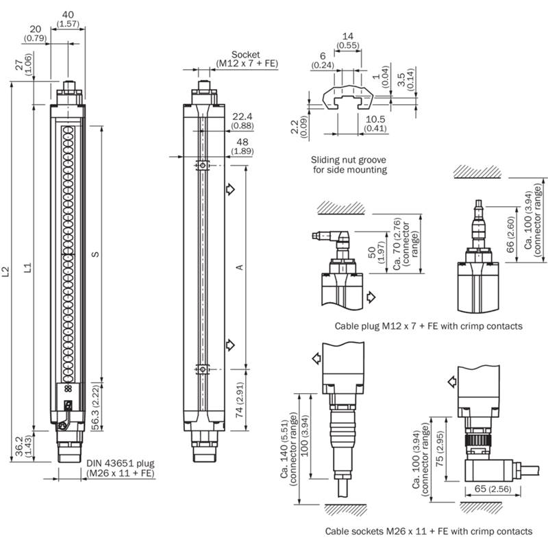 Barrage immatériel de sécurité; Type: Type 4; Pièce du système: Récepteur; Portée typique: 0 m ... 21 m; Résolution: 30 mm; Hauteur du champ de protection: 1.050 mm; Raccordement du système: Connecteur mâle Hirschmann M26, 12 pôles; Connecteur d'extension: Connecteur femelle M12, 8 pôles; Section du boîtier: 48 mm x 40 mm; Indice de protection: IP65 (EN 60529); Température de service: 0 °C ... +55 °C; Série: C4000 Standard