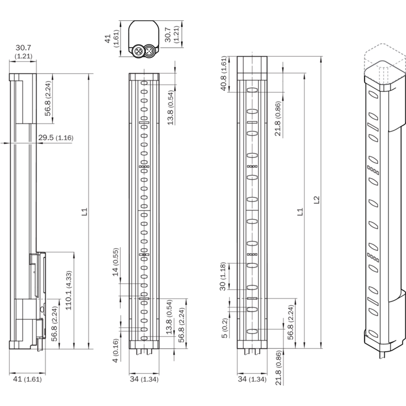 Barrage immatériel de sécurité; Type: Type 4; Variante deTec: deTec4 Prime; Pièce du système: Récepteur; Domaine d'utilisation: Environnement industriel standard; Hauteur du champ de protection: 2.100 mm; Raccordement du système: Dépend du connecteur système (connecteur mâle M12, 5 pôles ou 8 pôles); Tension d'alimentation: 24Vdc (19,2 V ... 28,8 V); Indice de protection: IP65, IP67; Température de service: –30 °C ... +55 °C; Compris dans la livraison: Récepteur, Bâton test; Série: deTec4 Prime