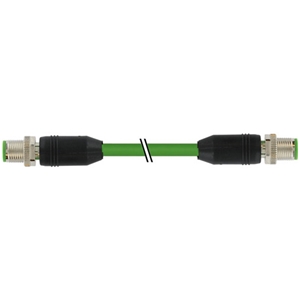 Connecteur M12, mâle, droit, 4 pôles, codé-D / Connecteur M12, mâle, droit, 4 pôles, codé-D; Câble PUR, blindé, 2 x 2 x 0.34 mm², Vert, Ethernet CAT5e, 100 MBit/s, 12m