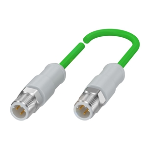 Connecteur / Câble de raccordement, Caractéristiques spéciales: Washdown, Raccordement A: Connecteur M12x1, mâle, 4-pôles, codé D, Raccordement B: Connecteur M12x1, mâle, 4-pôles, codé D, Interface: Profinet, Câble: PUR blindé vert, 2 m, compatible chaîne porte-câble, Câble, info: Profinet Type C, CAT 5E by...