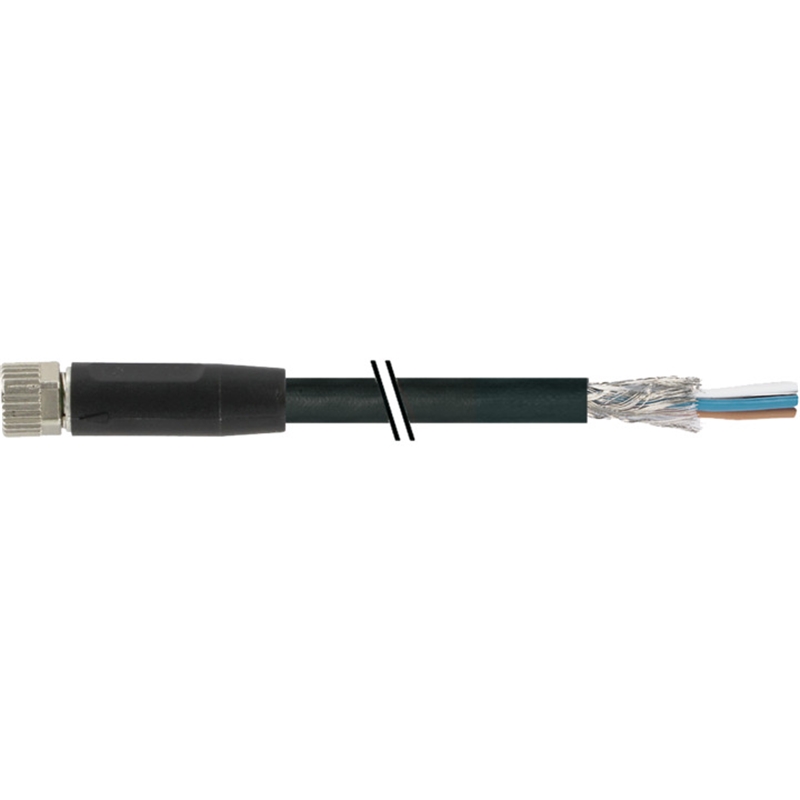 Connecteur / Câble de raccordement; Type: Câble de connexion M8 x 1; Raccordement A : Connecteur M8, femelle, droit, 4 pôles, codé-A; Raccordement B : Extrémité de câble libre; Câble: 5.00 m, PUR,, 4 fils (4 x 0.34 mm²), noir; Blindage : Blindé; Compatible chaînes porte-câbles : Oui (5 Mio.), 5 m/s²; Corps de poignée : PUR, noir; Matériau de l'écrou moleté : Zinc coulée sous pression; Tension d'emploi : max. 50 V AC / 60 V DC; Courant nominal : max. 4 A; Classe de protection : IP65, IP67; Température de service : - 25 ...+ 80 °C; Température de service, câble (mobile) : - 25 ...+ 80 °C; Température de service (fixe) : - 40 ...+ 80 °C