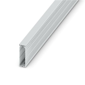 Goulotte, grise, exempte d'halogène, composée d'une partie supérieure et d'une partie inférieure, largeur : 25 mm, hauteur : 80 mm, longueur : 2 000 mm
