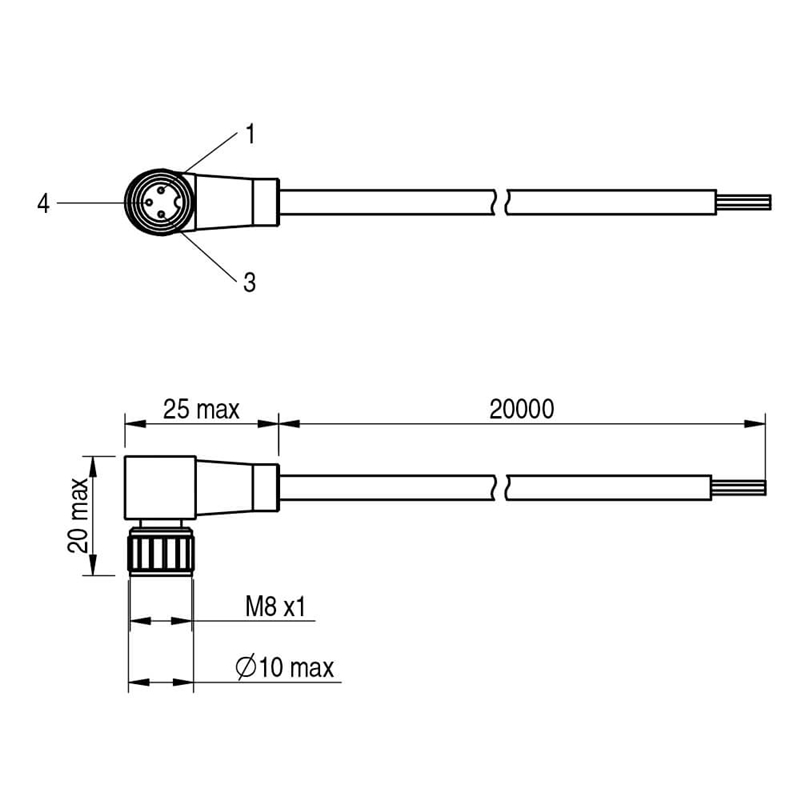 • Type: Câble de connexion, M8 x 1, surmoulé