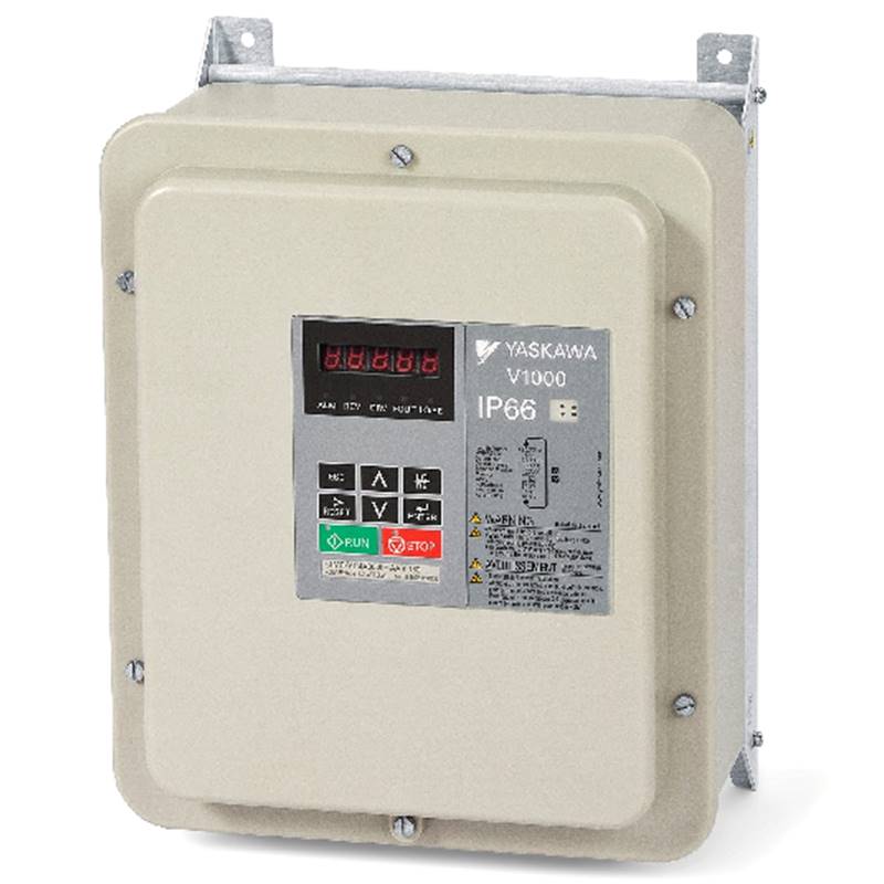 Variateur de fréquence V1000, 3x 380-480V, ND: 2,1 A 0,75 kW, HD: 1,8 A 0,4 kW, IP66 avec console opérateur