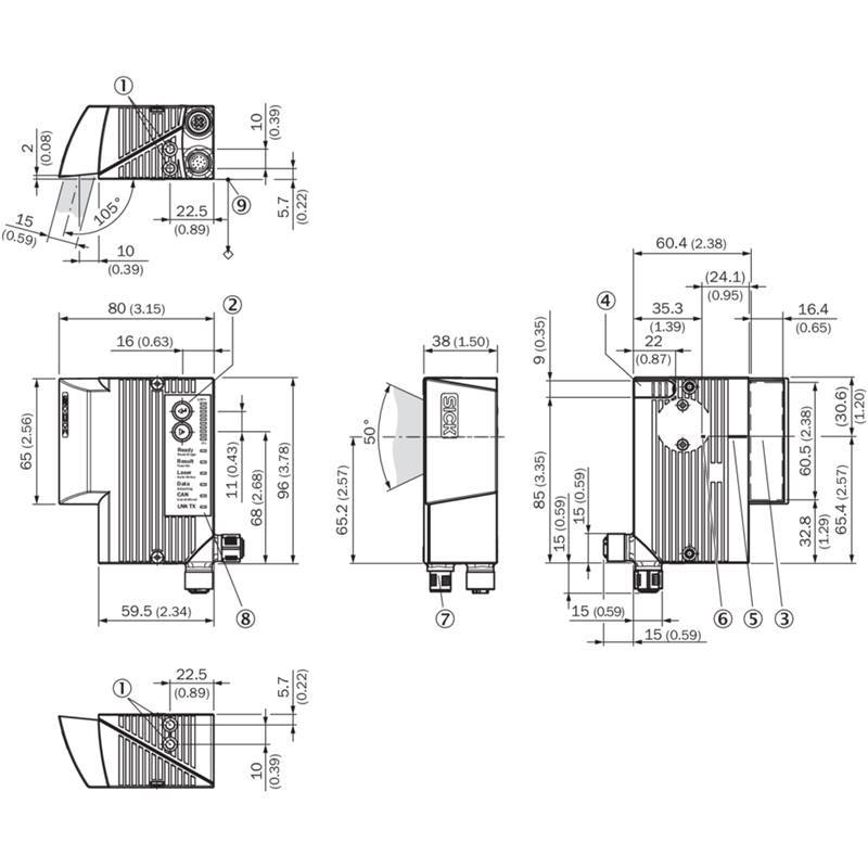 Lecteur de codes-barres; Version: Short Range; Mise au point: Focale fixe; Raccordement: Ethernet; Fenêtre de lecture: Sur le côté (105°); Modèle de lecteur: Lecteur multitrames; Indice de protection: IP65; Vitre frontale: Verre; Chauffages: non; Série: CLV63x