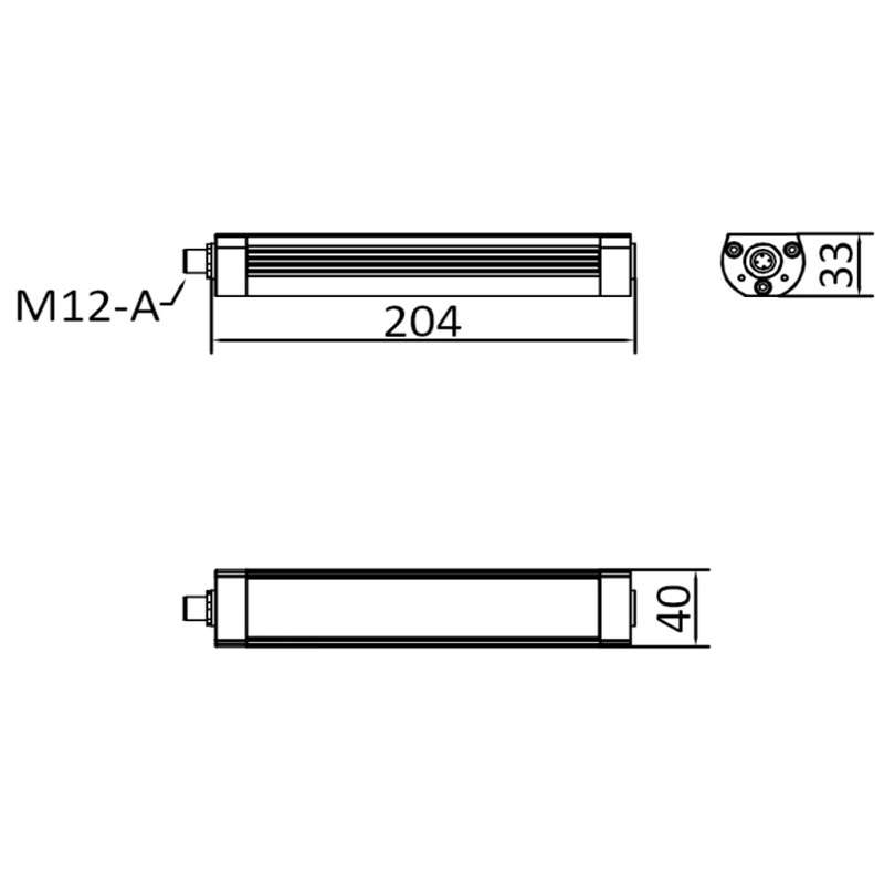 Lampe linéaire 204mm LED 30° 5000K 650lm 6W 24VDC M12A 4P