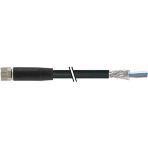 Connecteur / Câble de raccordement; Type: Câble de connexion, M12 x 1, surmoulé; Raccordement A: Connecteur M12, femelle, droit, 8 pôles, codé-A; Raccordement B: Extrémité de câble libre; Câble: 5.00 m, PUR sans halogène, 8 fils (8 x 0.25 mm²), noir; Blindage: Blindé; Compatible chaînes porte-câbles:...