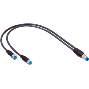 Pièces en Y et en T, YM8U14-C30P01FY8A3, Mode de raccordement tête A: Connecteur mâle, M8, 4 pôles, Codage A, Mode de raccordement tête B: Connecteur femelle, M8, 3 pôles, Codage A, Mode de raccordement tête C: Connec