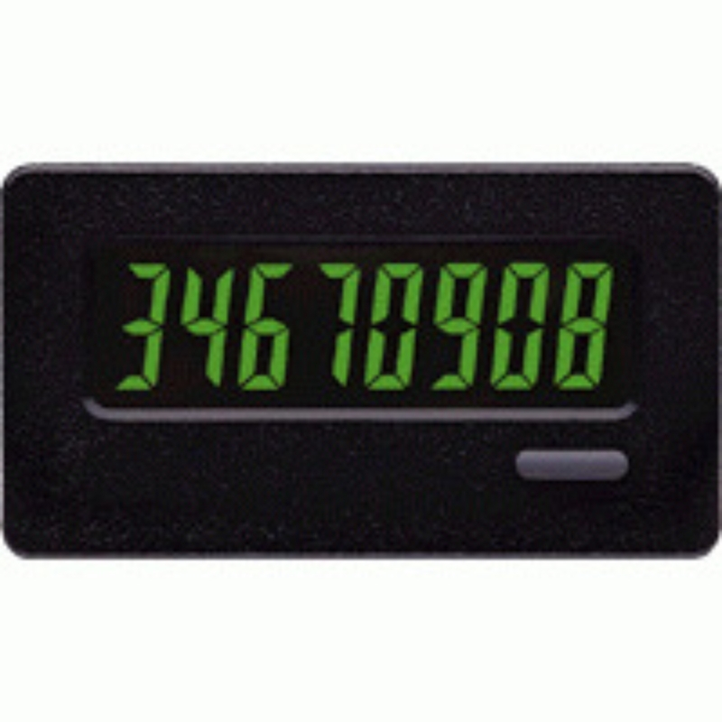 Compteur totaliseur; Format: 28 mm x 51 mm; Affichage: LED verte; Nombre de digits: 8; Hauteur de digit: 8,9 mm; Tension d'entrée: 50-250Vac/dc; Fréquence de comptage: 30Hz, 50Hz, 5kHz, 10kHz; Raccordement: Fils conducteurs; Alimentation en tension: Batterie, 3,6 Vdc; Type de montage: Montage panneau; Découpe panneau (H x L): 22.1mm x 44.96mm; Indice de protection: IP65; Température d'utilisation: 0°C ... +50°C; Série: CUB7