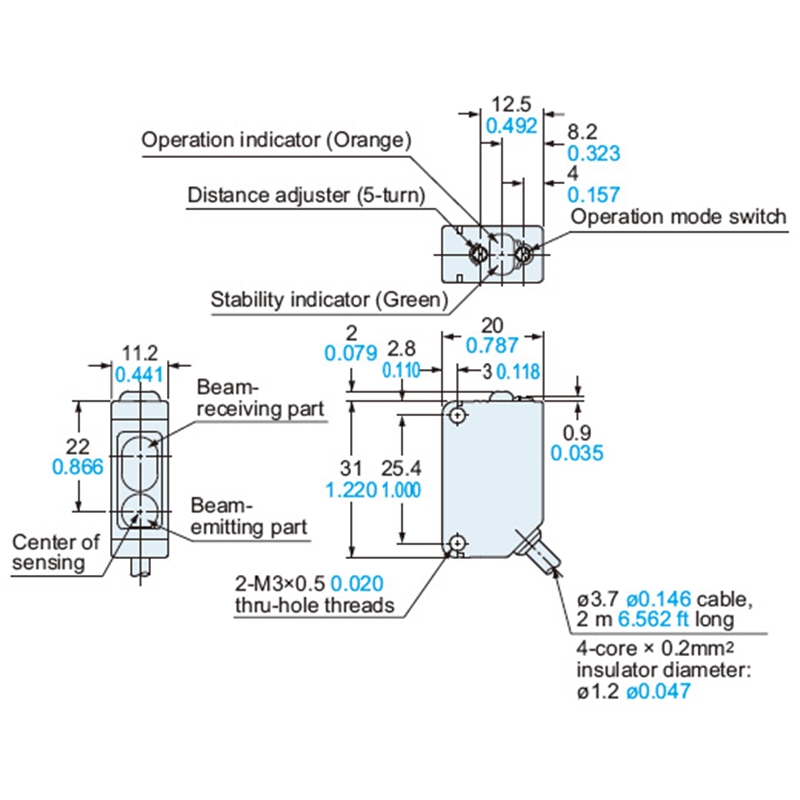 Capteur photoélectrique, à focalisation fixe, 100 mm, PNP, M8