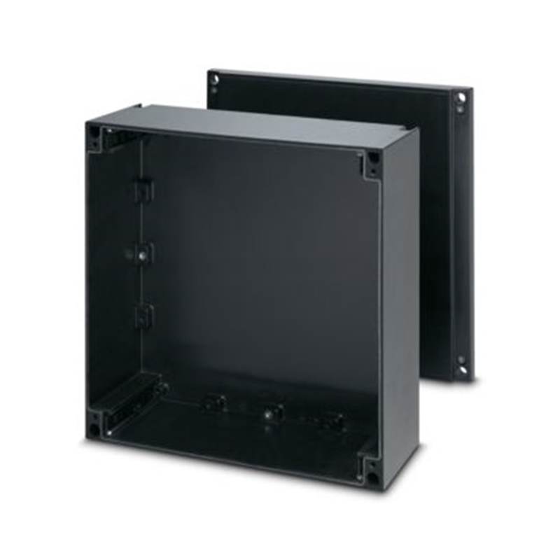Coffret de commande, avec deux niveaux de câblage, matériau: Polyester renforcé en fibres de verre, avec graphique ajouté, noir, 360 mm x 360 mm x 145 mm, type de verrouillage : Flasque vissé