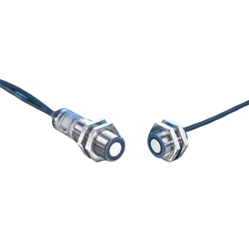 Détecteur à ultrasons; Format: Cylindrique fileté, M18 x 1; Mode de fonctionnement: Contrôle de double feuille ; Plage de travail: papier de 20 à 2.000 g/m2, Washi, feuilles métallisées et films jusqu’à 0,4 mm d’épaisseur, feuilles autocollantes, tôles jusqu’à 0,3 mm, cartons finement ondulés, barreaux de silicium, cartes imprimees ; Distance émetteur/récepteur: 20 - 60 mm; optimal : 40 mm ± 3 mm ; Sortie 1 (sortie double feuille): PNP, NO/NF; Sortie 2 (sortie feuille manquante): PNP, NO/NF; Temps de réponse: < 500 µs; Retard de mise à disposition: < 300 ms ; Entrées: Oui; Raccordement: Câble PUR de 2 m, 7 x 0,14 mm²; Raccordement émetteur/récepteur: - au récepteur : câble PUR de 1,2 m, - à l'émetteur : câble PUR de 1 m avec connecteur M8 ; Tension de service Ub: 20-30 Vdc; Matériau: Corps en laiton, nickelé, pièces en matière plastique PBT, PA ; Indice de protection: IP65 (EN 60529); Température de service: +5° C à +60° C