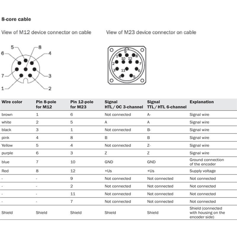 • Type de raccordement : câble ou câble avec connecteur mâle M12, M23