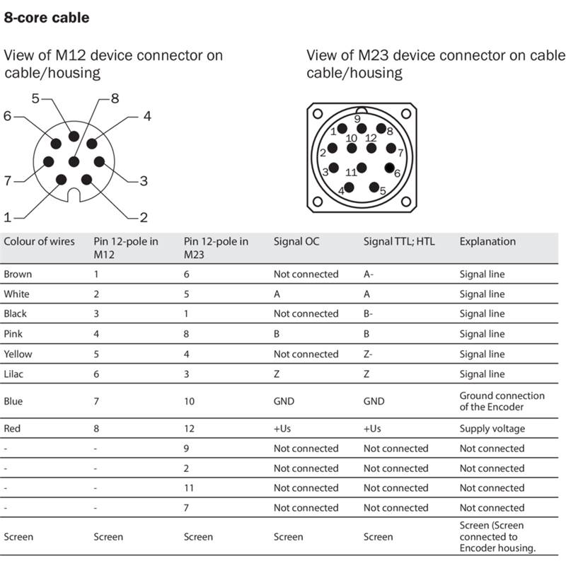 • Type de raccordement : connecteur mâle M12, M23, câble, câble avec connecteur mâle M12, M23
