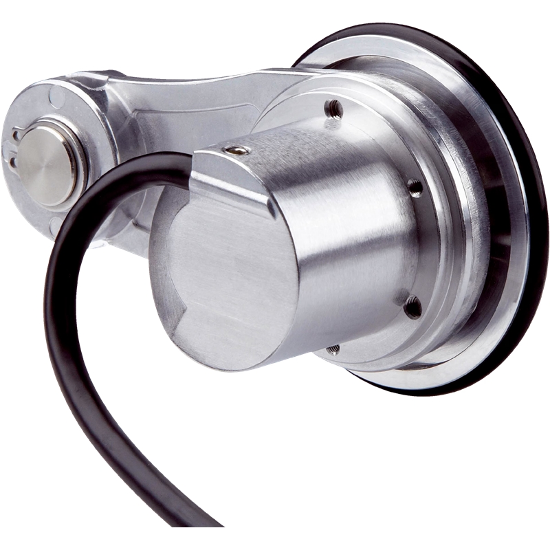 Le codeur à roue mesureuse DBV50 est un système à roue mesureuse permettant de mesurer les mouvements linéaires. Il comprend un codeur incrémental DBS50, une roue mesureuse en aluminium d’un diamètre de 200 mm et un bras à ressort. La résolution maximale est de 0,08 mm par impulsion. Le bras à ressort a un débattement maximal de 14 mm, une force maximale de 20 N et offre un réglage aisé de la précontrainte pour un réglage reproductible de la précontrainte élastique. Un système de limitation du débattement protège le ressort de toute surcharge. Le codeur peut être pivoté et monté des deux côtés du bras à ressort permettant ainsi d’adapter la pose du câble à l’application. Le système de roue mesureuse est disponible avec nombreuses interfaces électriques, possibilités de raccordement et résolutions.