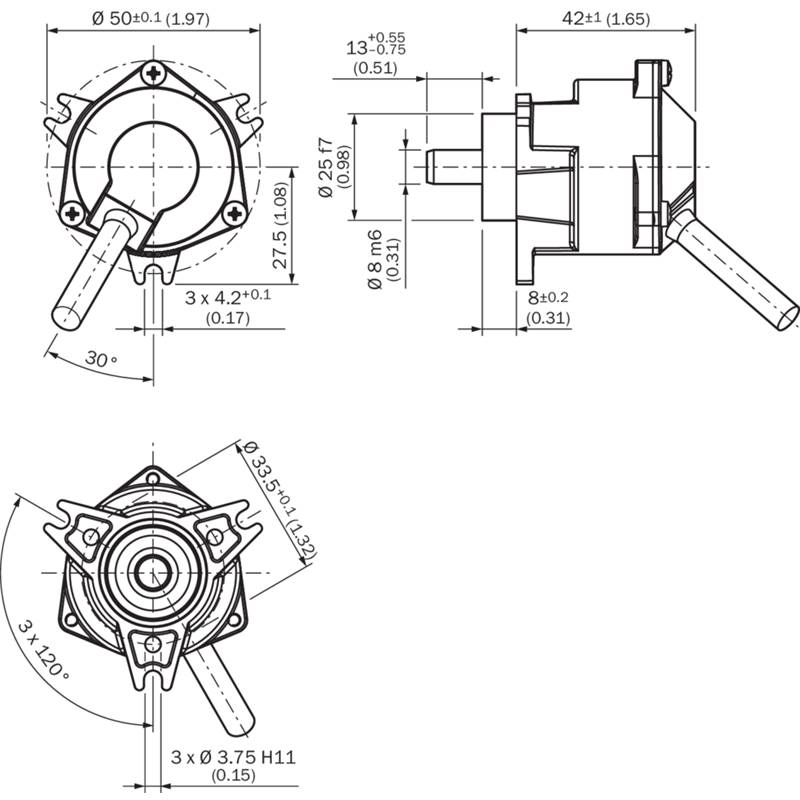 • Connexion à l’aide du départ de câble, utilisable radialement ou axialement avec des extrémités de câble libres ou avec connecteur M12 préconfectionné