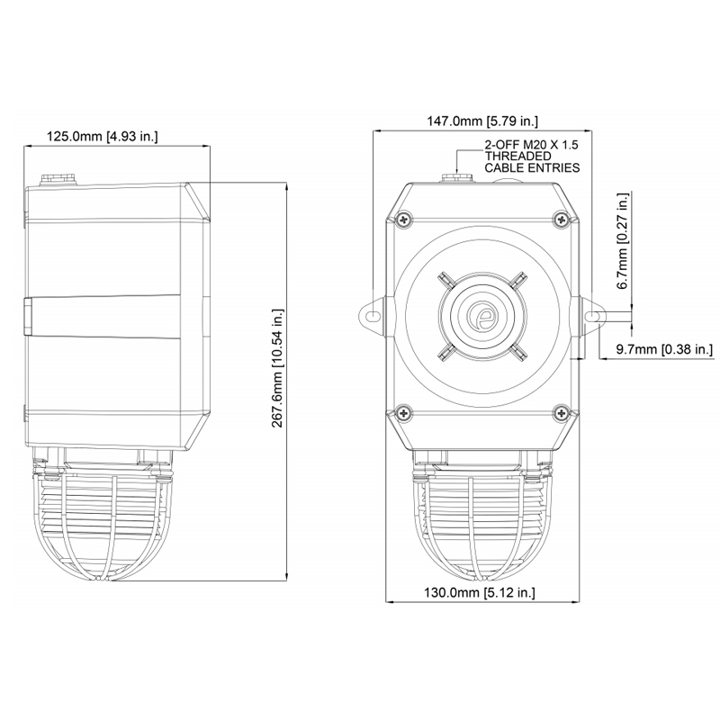 Combiné LED/119dB Fonte d'alu IP66 230 ±10% Vca - Transparent