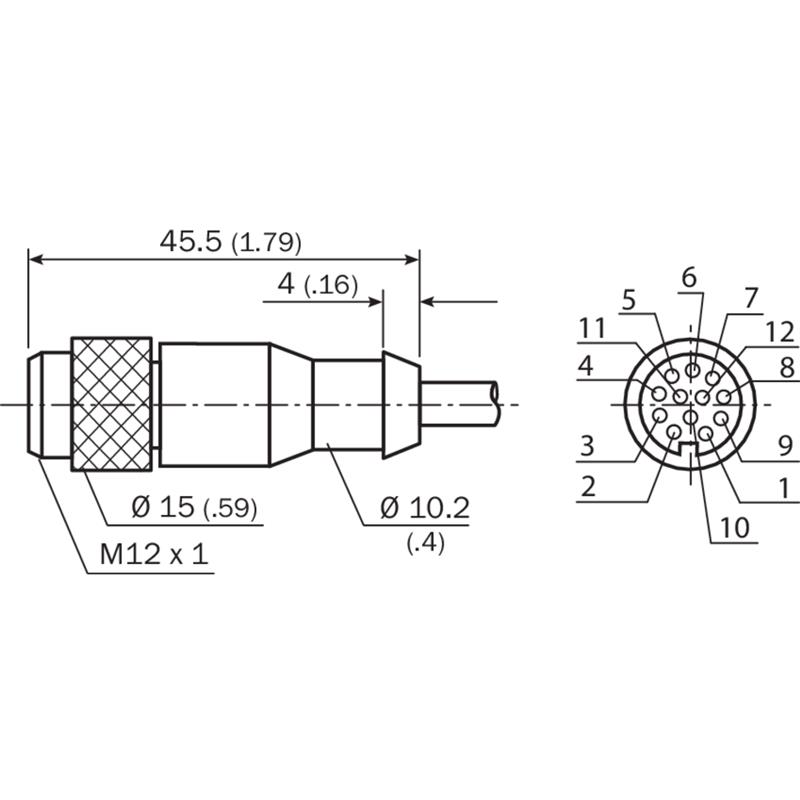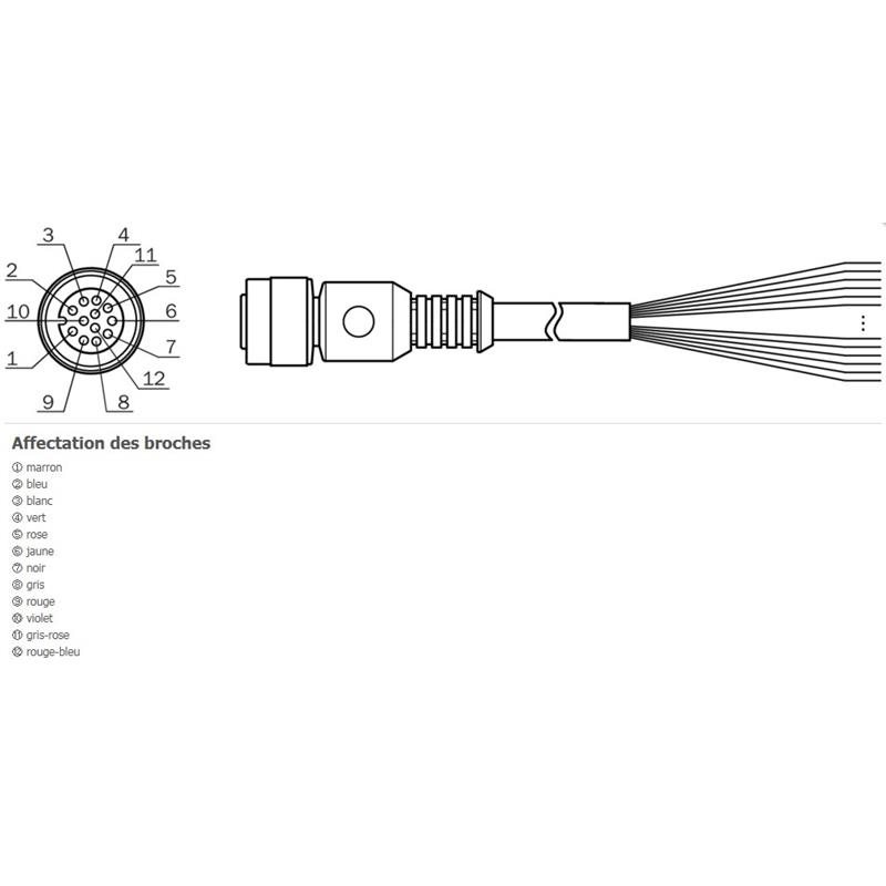 • Raccordement A: Connecteur M12, femelle, droit, 12 pôles