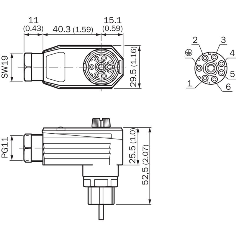 Connecteur / Câble de raccordement; Type: Connecteur confectionnable, M26; Raccordement A: Connecteur M26, femelle, coudé, 7 pôles; Raccordement B: Contacts à sertir, 0,5 mm² ... 1,5 mm², PE pour câble de 7 à 9 mm; Blindage: Non blindé