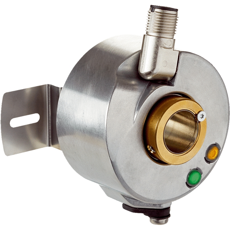Codeur incrémental; Format: Ø 60 mm; Interface mécanique: Axe creux traversant serrage derrière; Diamètre de l'axe: 5/8?; Interface de communication: Incrémental / TTL / HTL; Impulsions par tour: 1 ... 2400; Fonction de sortie: Canaux A et B; Mode de raccordement: Connecteur mâle M12, 4 pôles, universel; Type de bride / bras de couple: Bras de couple 2 points, rainure, diamètre de mortaisage 63 mm - 83 mm; Filtre de fréquence de commutation: non; Série: DUS60