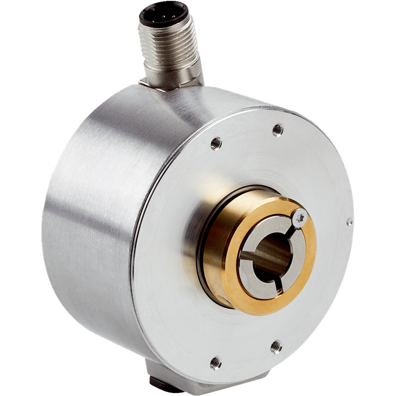Codeur incrémental; Format: Ø 60 mm; Interface mécanique: Axe creux traversant serrage devant; Diamètre de l'axe: 1/2?; Interface de communication: Incrémental / TTL / HTL; Impulsions par tour: 1 ... 240; Fonction de sortie: Canaux A et B; Mode de raccordement: Connecteur mâle M12, 4 pôles, universel; Type de bride / bras de couple: Sans support de couple; Filtre de fréquence de commutation: non; Série: DUS60