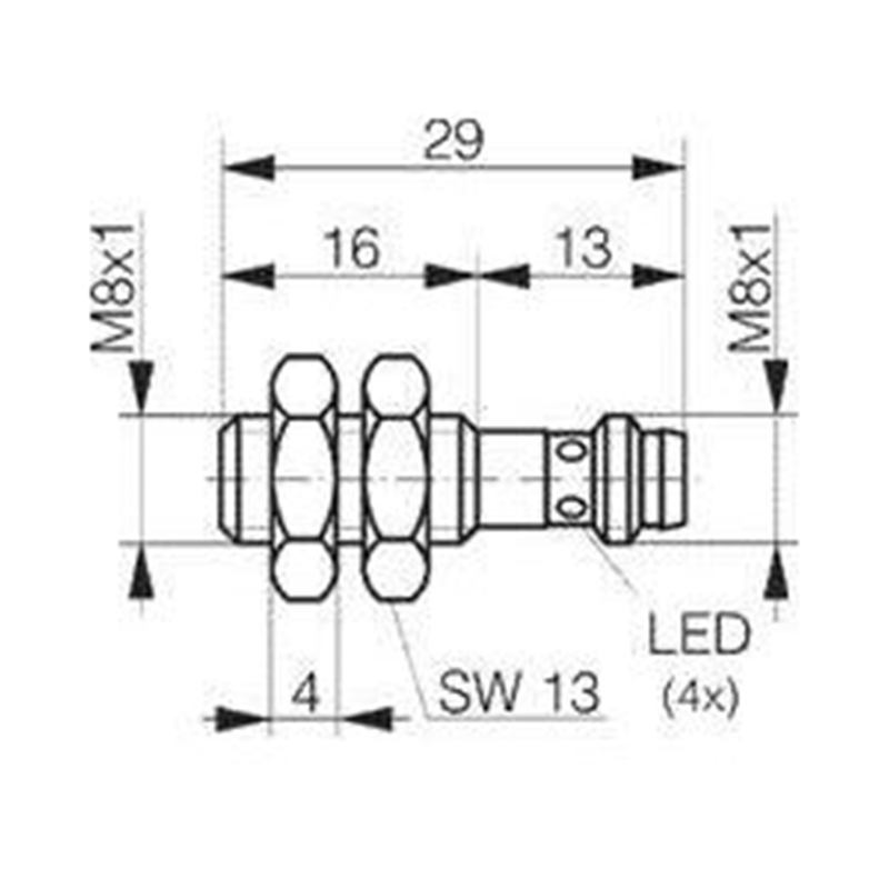 Détecteur de proximité inductif; Format: Cylindrique fileté, M8 x 1; Version électrique: 3 fils DC; Distance de commutation Sn: 3 mm; Montage: Noyable; Sortie de commutation: PNP; Type de commutation: Contact à fermeture (NO); Fréquence de commutation: 5000 Hz; Interface de communication: -; Raccordement: Connecteur mâle M8, 3 pôles, codé-A; Tension d'alimentation: 10-30Vdc; Diamètre: Ø 8 mm; Longueur totale du boîtier: 29 mm; Longueur de filetage utile: 16 mm; Matériau du boîtier: Acier inoxydable V2A; Matériau, surface active: PA12; Indice de protection: IP67; Température de fonctionnement: -25 ... +70 °C; Série: 420