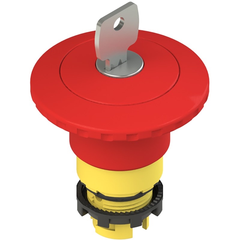 Bouton arrêt d'urgence avec déverrouillage par serrure et signalisation verte
