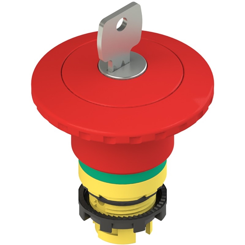 Bouton arrêt d'urgence avec déverrouillage par serrure et signalisation verte