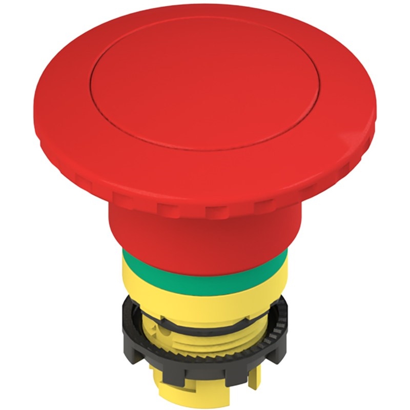 Bouton arrêt d'urgence avec déverrouillage push-pull et signalisation verte