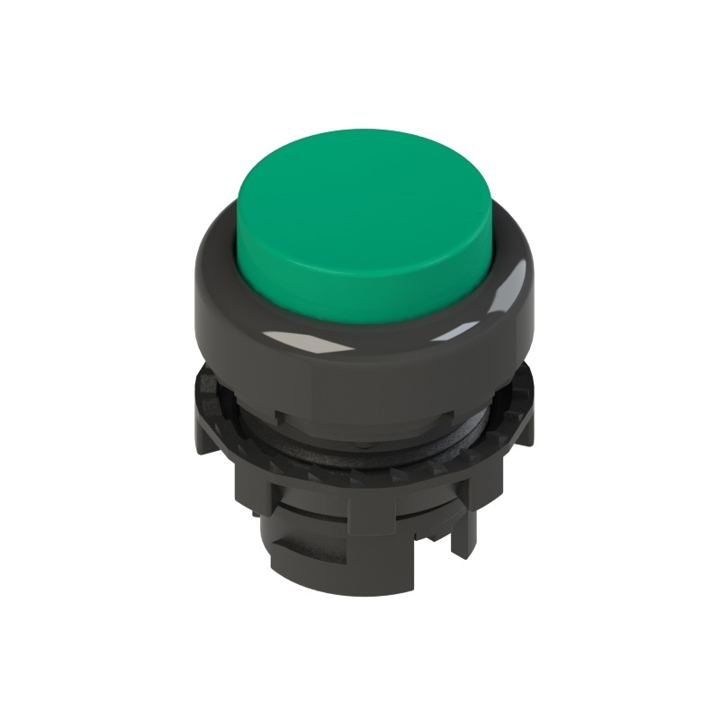 Bouton-poussoir dépassant à impulsion; Fonction du bouton: Impulsion; Forme: Dépassant Ø 20 mm; Couleur du bouton: Vert; Collerette: Noir; Marquage du bouton: Sans marquage; Degré de protection: IP67 selon EN 60529 et IP69K selon ISO 20653; Température ambiante: -25°C ... +80°C