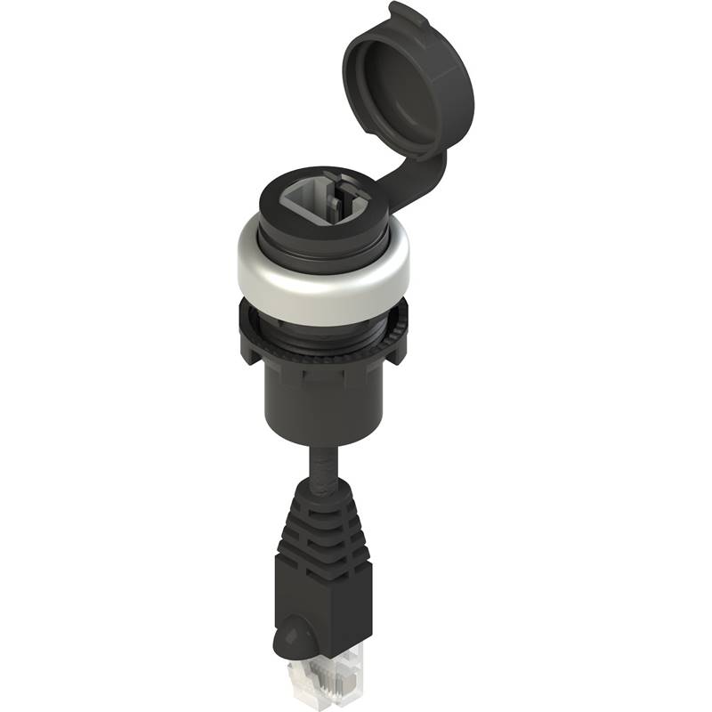 Prise RJ45; Collerette: Chromé; Connexion frontale: Prise intégrée RJ45 femelle; Connexion arrière: Câble 0.5m avec prise RJ45 mâle; Degré de protection: IP67; Série: EROUND