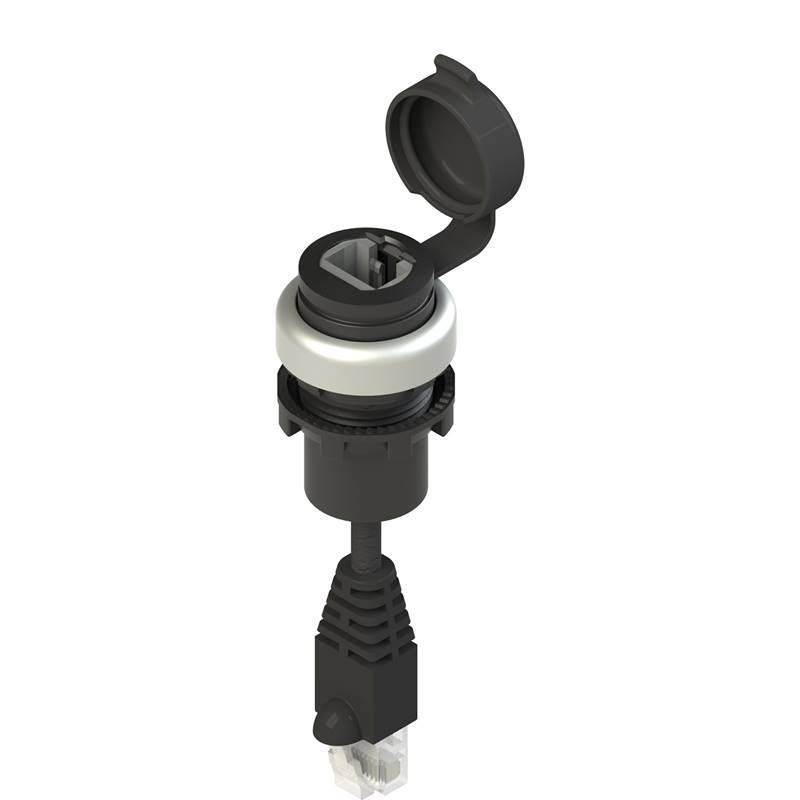 Prise RJ45; Collerette: Chromé; Connexion frontale: Prise intégrée RJ45 femelle; Connexion arrière: Câble 2.5m avec prise RJ45 mâle; Degré de protection: IP67; Série: EROUND