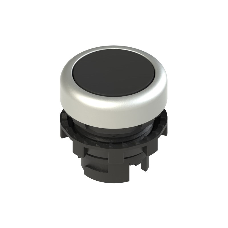 Bouton-poussoir affleurant à impulsion; Bague de fixation et anneau façonné: bague en métal; Fonction du bouton: Impulsion; Forme: Affleurant Ø 20 mm ; Couleur du bouton: Noir; Collerette: Chromé satiné; Marquage du bouton: Pas de marquage; Degré de protection: IP67 selon EN 60529 et IP69K selon ISO 20653; Température ambiante: -25°C ... +80°C (standard); Série: EROUND