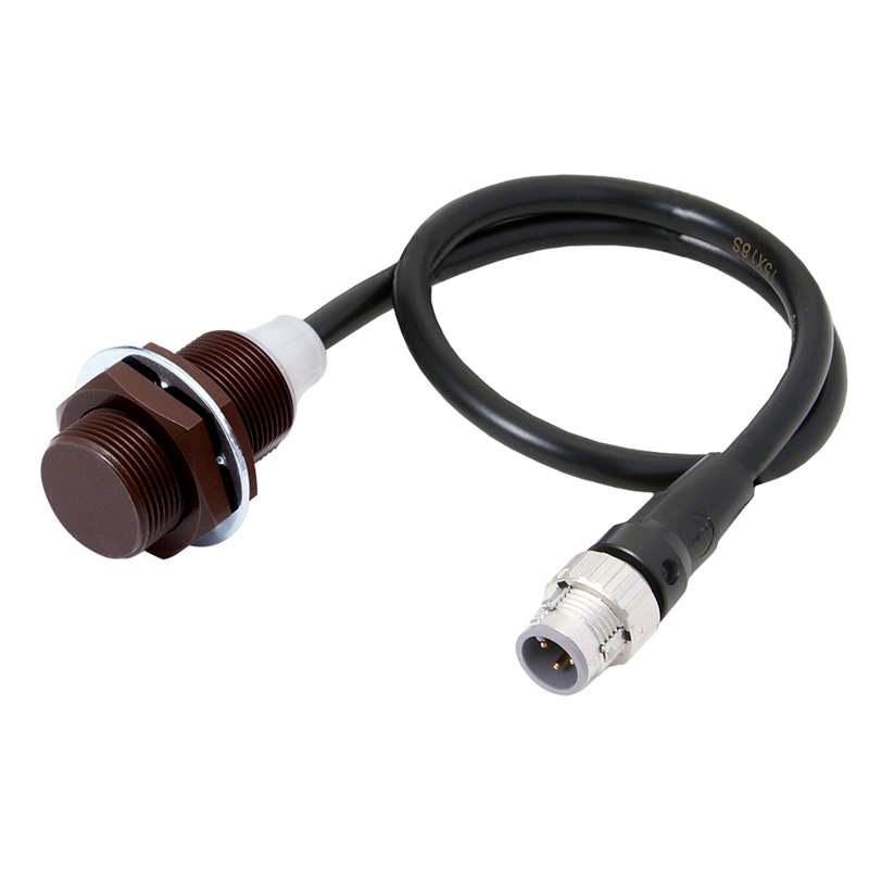 Détecteur de proximité inductif, revêtement fluororésine (sus 303) m18, noyable, 5 mm, dc, 3 fils, NPN no, connecteur smartclick m12 précâblé